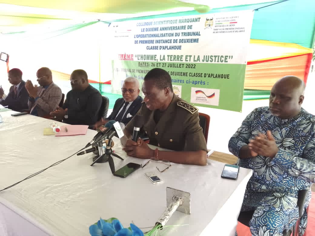 Pour marquer le dixième anniversaire du Tribunal de première instance d’Aplahoué, un Colloque scientifique a été organisé pour réunir dans une même salle les acteurs du secteur de la justice de même que les autorités du département du Couffo. A cette occasion, à l’ouverture comme à la clôture des travaux, Christophe Mègbédji en sa qualité de Président du Comité d’organisation, a témoigné toute sa reconnaissance aux parties prenantes surtout au gouvernement de Patrice Talon pour la contribution en vue de la réussite de l’événement. Tout en rappelant dans son discours d’ouverture l’historique du TPI d’Aplahoué, il a tenu à remercier les uns et les autres surtout les partenaires au développement du Couffo dont l’apport a permis de réfléchir sur le chemin parcouru en dix ans d’existence, d’échanger sur les acquis pour aller à des perspectives et tout ceci autour du thème : « L’homme, la terre et la justice ». Pour le numéro 1 du département du Couffo, ce thème suffisamment évocateur a été bien à travers ses sous-thèmes, décortiqué lors des travaux par les spécialistes qui ont éclairé la lanterne des participants sur ce qui est à retenir. Et en présence de plusieurs autorités politico-administratives, après avoir félicité l’exécutif pour les efforts sans cesse consentis au bénéfice du Couffo, il a souhaité que les actes posés au profit de la justice se poursuivent. « Je voudrais vous saluer et vous remercier du fond du cœur pour votre attachement au présent Colloque scientifique que nous avons après réflexion, retenu d’organiser pour marquer les dix ans du Tribunal d’Aplahoué depuis son opérationnalisation le 22 juillet 2012 par le gouvernement du Bénin. Une loi de 2002 avait déjà consacré la création du Tribunal d’Aplahoué mais il a fallu attendre jusqu’en Juillet 2012 soit dix ans après pour voir ce Tribunal entré dans sa phase opérationnelle à travers l’inauguration par Mme le Garde des sceaux, ministre de la justice d’alors, Mme Elyse Gbèdo. En ma qualité de Préfet du Couffo et Président du Comité d’organisation de ce Colloque scientifique, je tiens solennellement à témoigner ma profonde gratitude à Mr le Garde des sceaux ministre de la justice et de la justice et de la législation pour avoir accepté de parrainer cet événement et pour toutes les facilités dont nous avons bénéficié de la part du ministère et de tout le gouvernement de son excellence, le Président Patrice Talon », a-t-il laissé entendre comme pour témoigner sa gratitude aux uns et aux autres pour la réussite de l’activité.